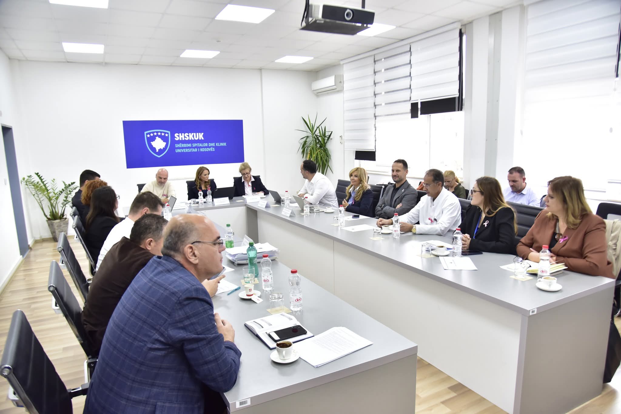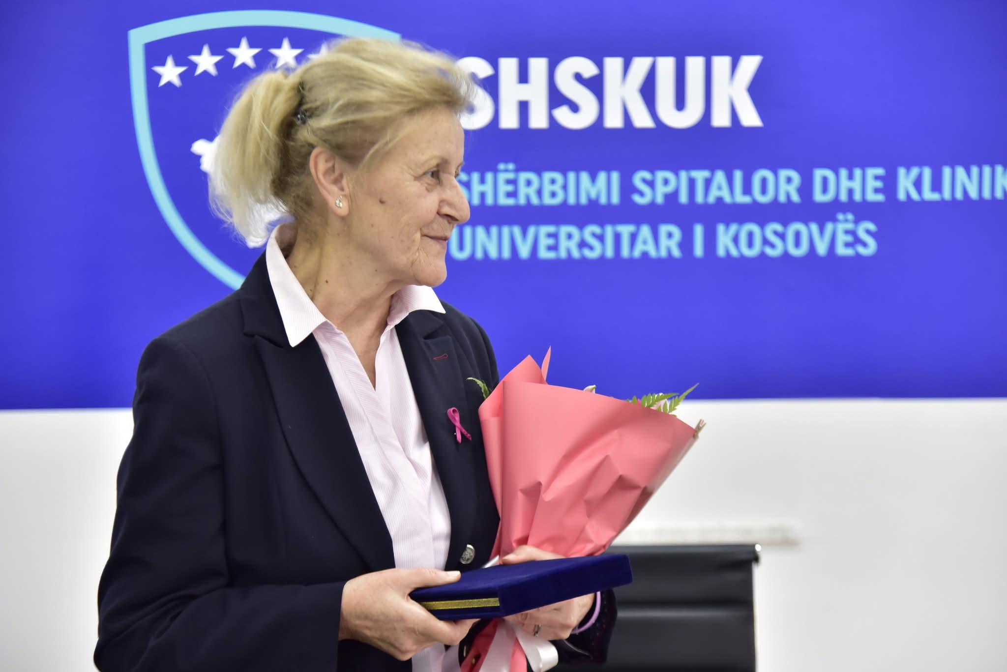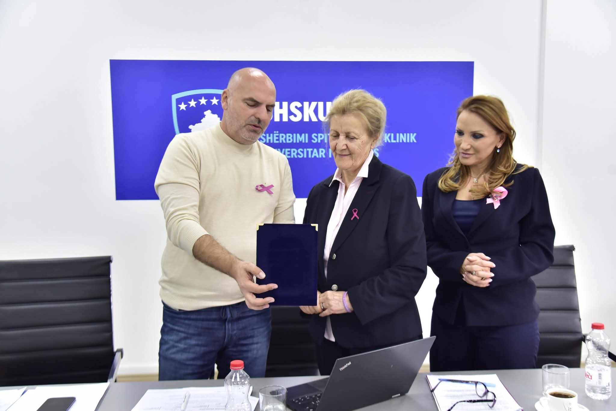 Bordi Drejtues i Shërbimit Spitalor dhe Klinik Universitar i Kosovës ka mbajtur mbledhje, i cili i është të dedikuar Muajit Rozë, muajit të vetëdijësimit për luftën kundër kancerit të gjirit. Mbledhjen e hapi, Tetore Olloni, kryesuese e Bordit, e cila tha se përmes znj. Nafije, Tetori Rozë nuk sjell vetëm ngjyra dhe kordele rozë, por mbetet këmbanë alarmi dhe simbol i solidaritetit. Sipas saj, me një kauzë fisnike që ajo ka ndjekur për dy dekada, ka trokitur në ndërgjegjen e secilit, duke bartur dhimbjen e mijëra grave dhe rikthyer shpresën për jetën, andaj ShSKUK, po e hap portën e madhe për znj. Nafije, si e ftuar nderi. Anëtarët e Bordit Drejtues të ShSKUK-së, theksuan rëndësinë e diagnostikimit të hershëm, kujdesit të integruar dhe mbështetjes së pacienteve, duke u zotuar për vazhdimin e bashkëpunimit profesional dhe institucional. Drejtori i përgjithshëm i ShSKUK-së, z. Elvir Azizi, ndau mirënjohjen e veçantë për znj. Latifi, për kontributin e jashtëzakonshëm, mbi dy dekada, me përkushtim në përkrahje të kauzës humane për pacientët me kancer dhe avancimin e shërbimeve shëndetësore në vend. Drejtori Azizi, tha se falë punës, humanizmit dhe vizionit të znj. Latifi, shumë pacientë kanë gjetur mbështetje, forcë dhe shpresë në përballjen me sfidat e jetës, andaj meriton vlerësim dhe falënderim i thellë për rolin e pazëvendësueshëm në ngritjen e vetëdijes publike dhe promovimin e solidaritetit njerëzor në fushën e onkologjisë. Znj. Nafije Latifi, kryetare e Shoqatës “JETA/VITA”, theksoi se prej 19 vitesh qëndrojmë në terren, në kontakt me qytetarët dhe profesionistët e shëndetësisë. Sipas saj Qëllimi ka qenë gjithmonë informimi dhe vetëdijesimi për zbulimin e hershëm të sëmundjes dhe shpëtimin e jetëve. Ajo theksoi se lufta kundër kancerit të gjirit nuk fitohet vetëm me kirurgji dhe barna, por edhe me empati, ndjeshmëri dhe bashkëpunim të vazhdueshëm. Gjatë takimit u zhvilluan diskutime nga drejtues të klinikave që merren me trajtimin e kancerit, duke theksuar se të gjitha shërbimet ofrohen në sektorin publik, pa pasur nevojë që pacientët të shpenzojnë për trajtim. Ilir Kurtishi, drejtor i Klinikës së Onkologjisë, theksoi se për 9 muaj kanë pasur 330 raste me kancer gjiri (4 meshkuj). Shkëndije Nuza, drejtoreshë e Klinikës së Radiologjisë, pohoi se për nëntë muaj kanë kryer 1200 mamografi, 1975 eho gjiri, 480 rezonanca gjiri, si dhe 230 biopsi. Violeta Zatriqi, drejtoreshë e Klinikës së Kirurgjisë Plastik, tha se janë kryer 140 operime,fillimisht vendoset ekspander indor, pastaj implante, me përfshirje të muskulit. Nazmi Kolgeci, drejtor i Kirurgjisë Torakale tha se për nëntë muaj janë kryer 230 operacione gjiri, (74 sentinell, 58 kirurgji kuruese si dhe 140 biopsi eksicionale.
